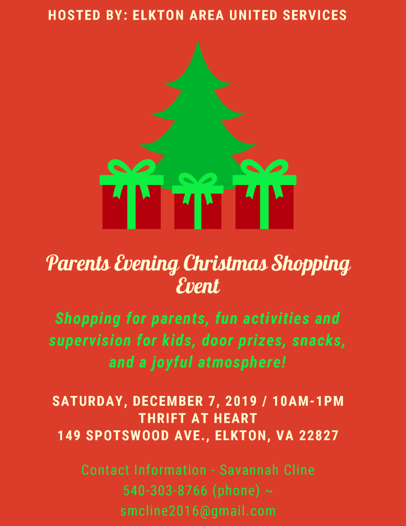 During the Fall 2019 semester at James Madison University, I and five other students worked with the Elkton Area United Services to put on a Christmas-themed shopping event. One of my responsibilities was creating the promotional flyer. I utilized a template on Canva to give it a professional appearance.